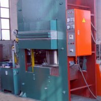 315吨平板硫化机:适用于压制各种模压制品,如压制橡胶及热固性塑料,也适用于一薄片制品,平板硫化机为框式整体结构,压制型式为下(向下)压式,分主机、油箱和电控箱三分部。主机装有柱塞、油缸、固定平板、活动平板等部件。油箱有油泵、管道、阀等部件。油泵有电动机带动,电控箱装有按钮开关、磁力起动器、计时报警器、自动控温仪、过载保护器等,当电动机过载能自动切断电源,电加热由自动控温仪分两路控温,能在20-200℃范围内任意调节,当达到温度后,电路能自动保持恒温,达到设定的硫化时间后,能自动报警。