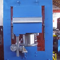 主要用于硫化平型胶带(如输送带、传动带,简称平带),它具有热板单位面积压力大,设备操作可靠和维修量少等优点。平板硫化机的主要功能是提供硫化所需的压力和温度。压力由液压系统通过液压缸产生,温度由加热介质(通常为蒸汽)所提供。平板硫化机具有以下优点:在一定的中心距下,允许安装较大直径的液压缸,从而可减少液压缸数量,并且结构简单,维修量少;上横梁受力合理,所需的断面模量远比住式的小,可以减轻重量;制造安装简单,管路配置隐蔽,整机外形整齐美观。框式平带平板硫化机单个框板的侧向刚度比立柱差,但是由于框式平带平板硫化机的机架均为由多个框板组合而成,因此整机具有足够的侧向刚度。
