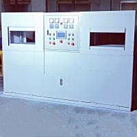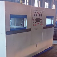 固性塑料、树脂、电木等制品的压制成型.双主机、油箱和电控箱三分部。主机装有柱塞、油缸、固定平板、活动平板等部件。油箱有油泵、管道、阀等部件。油泵有电动机带动,电控箱装有按钮开关、磁力起动器、计时报警器、自动控温仪、过载保护器等,当电动机过载能自动切断电源,电加热由自动控温仪分三路控温,能在20-200℃范围内任意调节,当达到温度后,电路能自动保持恒温,达到设定的硫化时间后,能自动报警。 带自动推拉模机构,硫化完成自动推出模具,方便取件放料。降低工人劳动强度。