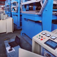 315吨平板硫化机:适用于压制各种模压制品,如压制橡胶及热固性塑料,也适用于一薄片制品,平板硫化机为框式整体结构,压制型式为下(向下)压式,分主机、油箱和电控箱三分部。主机装有柱塞、油缸、固定平板、活动平板等部件。油箱有油泵、管道、阀等部件。油泵有电动机带动,电控箱装有按钮开关、磁力起动器、计时报警器、自动控温仪、过载保护器等,当电动机过载能自动切断电源,电加热由自动控温仪分两路控温,能在20-200℃范围内任意调节,当达到温度后,电路能自动保持恒温,达到设定的硫化时间后,能自动报警。