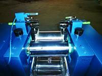 XK-160标准型开炼机.本机器主要有机架、轴承座固定机脚,电动机,减速机,辊筒(辊筒采用冷硬合金辊筒 硬度HRC50-55 ,工件表面经磨削加工,具有高硬度和耐磨性。),轴承,安全开关,冷却装置,以及电气控制等部分组成。本机器传动系统由减速机通过减速机输出带动前后辊速比齿轮在一定速比下工作。本机器装有冷却装置,通过冷却水冷却辊筒(辊筒内为空心,通冷水用来调节辊筒温度),以便满足工艺要求。为了防止胶料从辊筒两端挤入辊筒轴承部位,在辊筒两端装有活动挡胶板。辊距的调整是通过手轮。从在机器压板上装有标尺上来调整所需辊距。具体胶片精度从卡尺量出,通过手柄微调来修整。本机器的安全装置,在机器操作面装有膝压式急停板,安全装置,如有危险膝盖顶压黄色板,辊筒立即反转停止转动,安全有效。安全装置:拉杆式急停1套,工作面加2个急停按钮