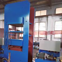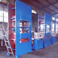 315吨平板硫化机:本机为小型实心轮胎生产厂家定制,专业生产小型胶轮,也适用于压制各种模压制品,如压制橡胶及热固性塑料,也适用于一薄片制品,平板硫化机为框式整体结构,压制型式为下(向下)压式,分主机、油箱和电控箱三分部。主机装有柱塞、油缸、固定平板、活动平板等部件。油箱有油泵、管道、阀等部件。油泵有电动机带动,电控箱装有按钮开关、磁力起动器、计时报警器、自动控温仪、过载保护器等,当电动机过载能自动切断电源,电加热由自动控温仪分两路控温,能在20-200℃范围内任意调节,当达到温度后,电路能自动保持恒温,达到设定的硫化时间后,能自动报警。
